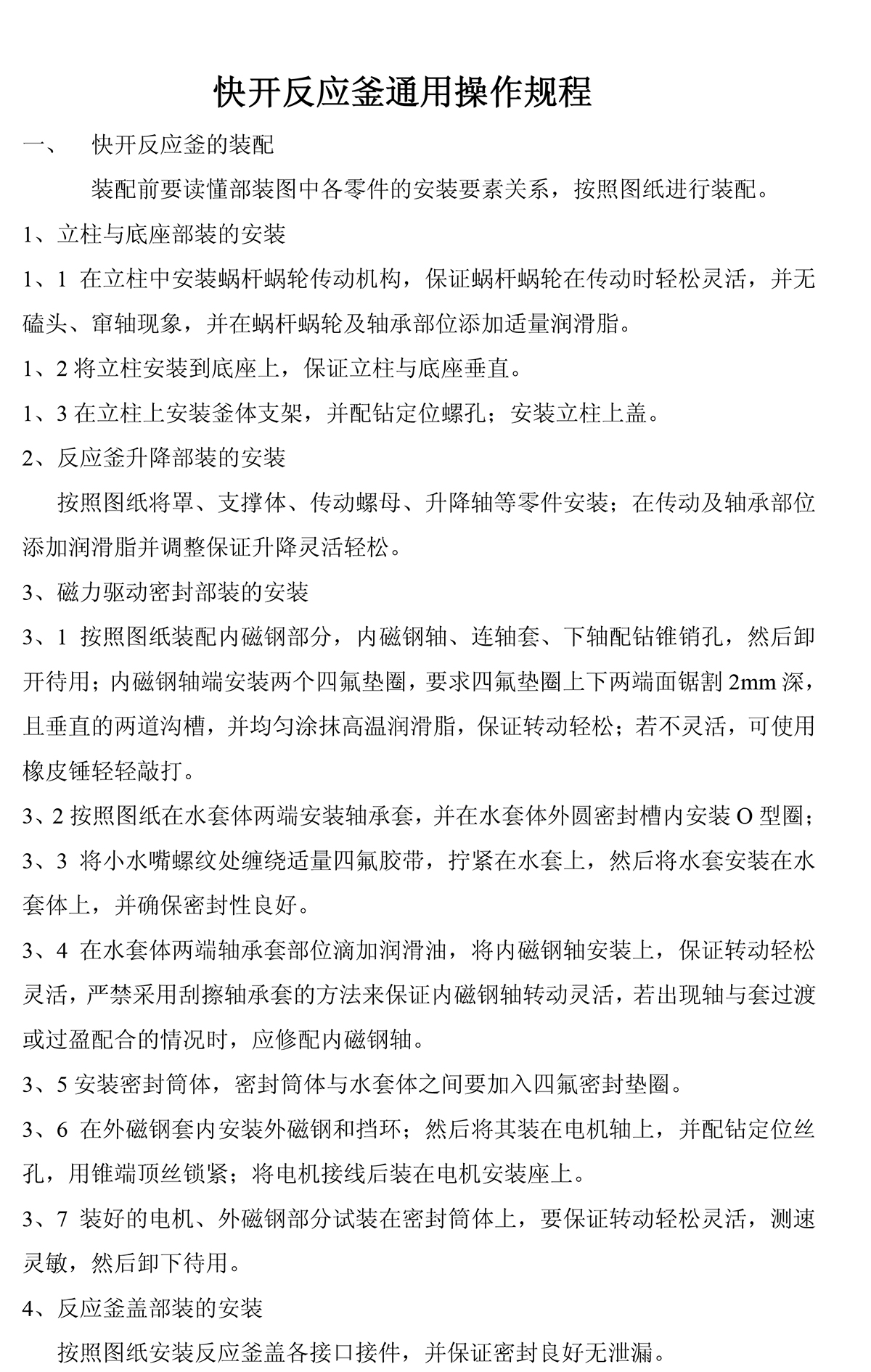 快開反應釜通用操作規(guī)程